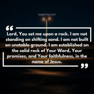 8. Lord, You set me upon a rock. I am not standing on shifting sand. I am not built on unstable ground. I am established on the solid rock of Your Word, Your promises, and Your faithfulness, in the name of Jesus.