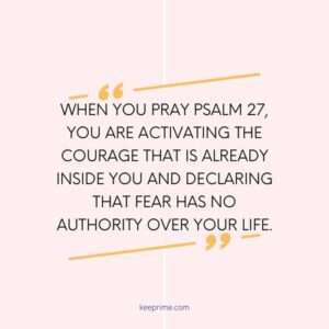 The enemy wants you to live in fear, to shrink back from your calling, to hide your gifts, and to play it safe. But God says, “I have not given you a spirit of fear, but of power, love, and a sound mind” (2 Timothy 1:7). When you pray Psalm 27, you are activating the courage that is already inside you and declaring that fear has no authority over your life.