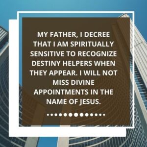 8. My Father, I decree that I am spiritually sensitive to recognize destiny helpers when they appear. I will not miss divine appointments in the name of Jesus.