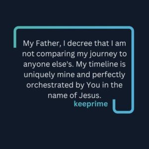 10. My Father, I decree that I am not comparing my journey to anyone else’s. My timeline is uniquely mine and perfectly orchestrated by You in the name of Jesus.