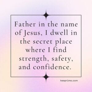 1. Father in the name of Jesus, I dwell in the secret place where I find strength, safety, and confidence. I abide under the shadow of the Almighty.