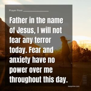 7. Father in the name of Jesus, I will not fear any terror today. Fear and anxiety have no power over me throughout this day.