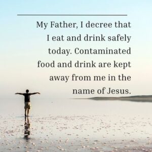 18. My Father, I decree that I eat and drink safely today. Contaminated food and drink are kept away from me in the name of Jesus.